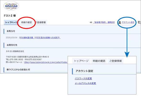 ログインしたら、赤丸で囲った【明細の確認】を押してください。