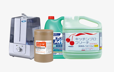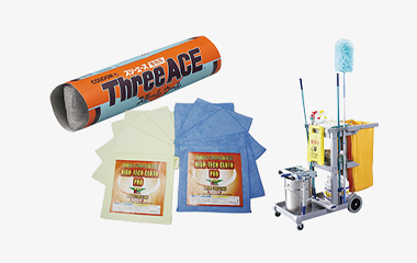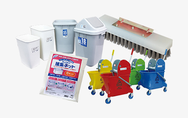 除菌剤・消臭剤・特殊クロス・高所清掃用品・清掃カート・汚物処理・ゴム手袋・タオル・バケツ&ホース・ホースリールなど