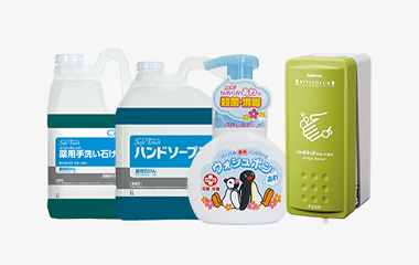カネヨシ商事では、洗剤やラップやスポンジ、各種清掃用品を通して、飲食店(レストラン、居酒屋など)やホテル、介護・福祉施設などにご来店いただいたお客様に安心・安全を届ける為、様々な衛生管理用品を取り揃えております。