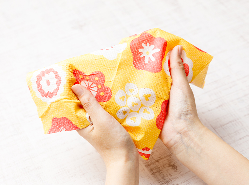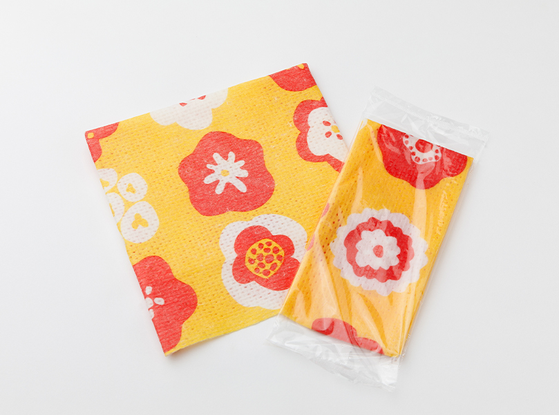 紙おしぼりの「安っぽさ」を払拭し、布おしぼりと同等の高級感を演出。コットンみたいなフンワリ感が、お肌に優しいおしぼりです。
