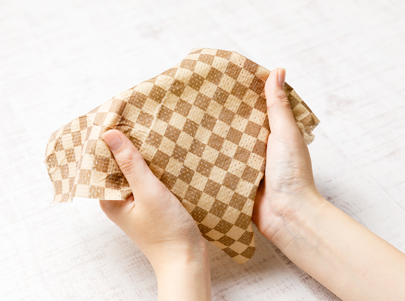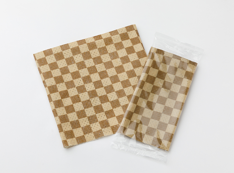 紙おしぼりの「安っぽさ」を払拭し、布おしぼりと同等の高級感を演出。コットンみたいなフンワリ感が、お肌に優しいおしぼりです。