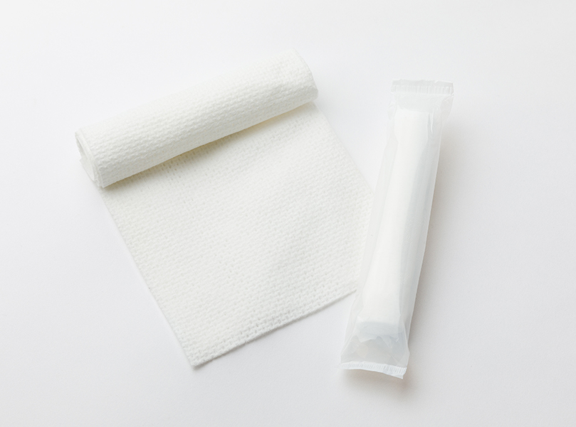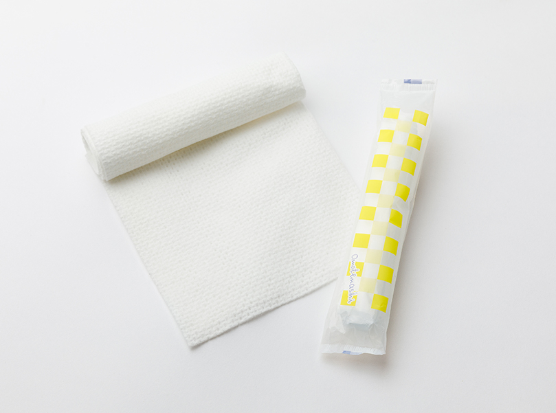 紙おしぼりの「安っぽさ」を払拭し、布おしぼりと同等の高級感を演出。コットンみたいなフンワリ感が、お肌に優しいおしぼりです。