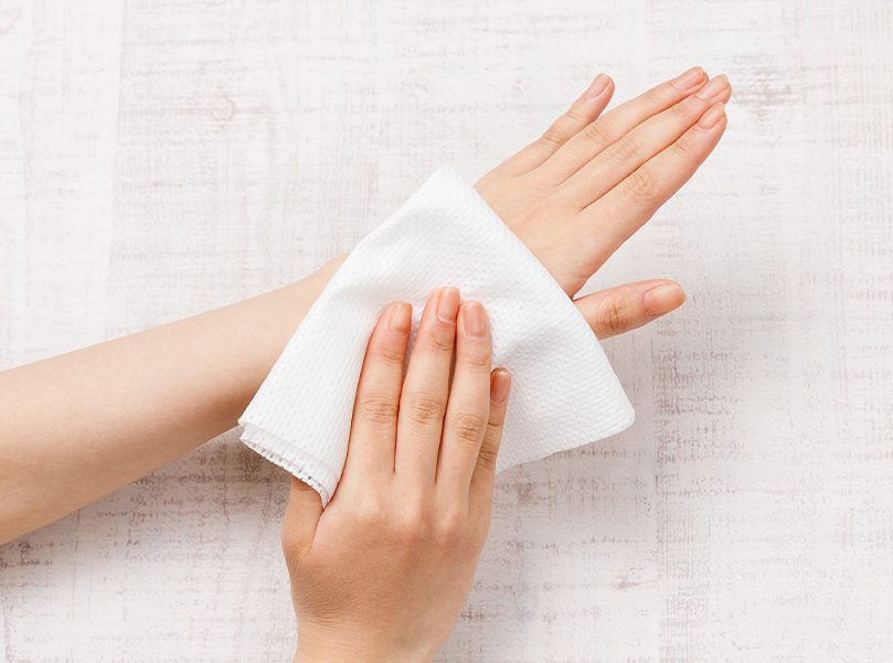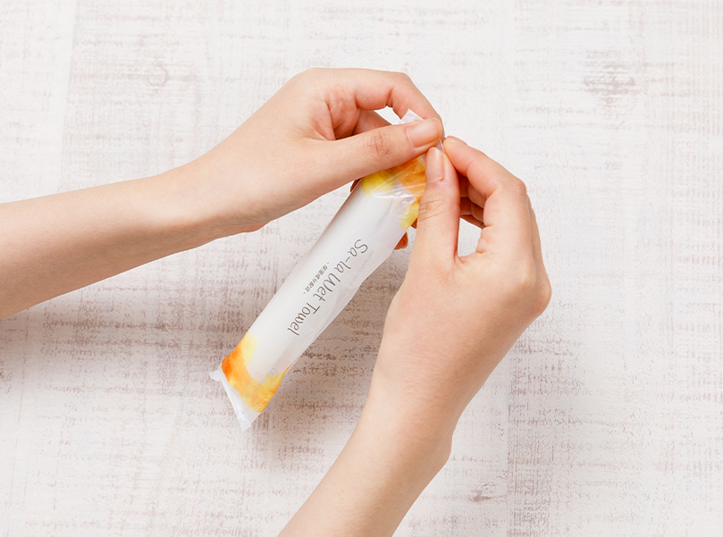 紙おしぼりの「安っぽさ」を払拭し、布おしぼりと同等の高級感を演出。コットンみたいなフンワリ感が、お肌に優しいおしぼりです。