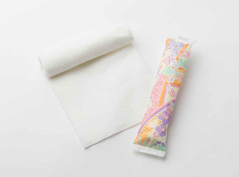 紙おしぼりの「安っぽさ」を払拭し、布おしぼりと同等の高級感を演出。コットンみたいなフンワリ感が、お肌に優しいおしぼりです。