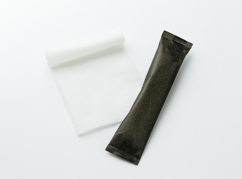 紙おしぼりの「安っぽさ」を払拭し、布おしぼりと同等の高級感を演出。コットンみたいなフンワリ感が、お肌に優しいおしぼりです。