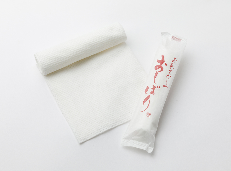 紙おしぼりの「安っぽさ」を払拭し、布おしぼりと同等の高級感を演出。コットンみたいなフンワリ感が、お肌に優しいおしぼりです。