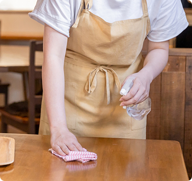 洗剤やラップやスポンジ、各種清掃用品を通して、飲食店(レストラン、居酒屋など)やホテル、介護・福祉施設などにご来店いただいたお客様に安心・安全を届ける為、様々な衛生管理用品を取り揃えております。和食店・洋食店・中華料理店・ホテル・病院・アミューズメント施設など、様々なお客様にご利用いただいています。
